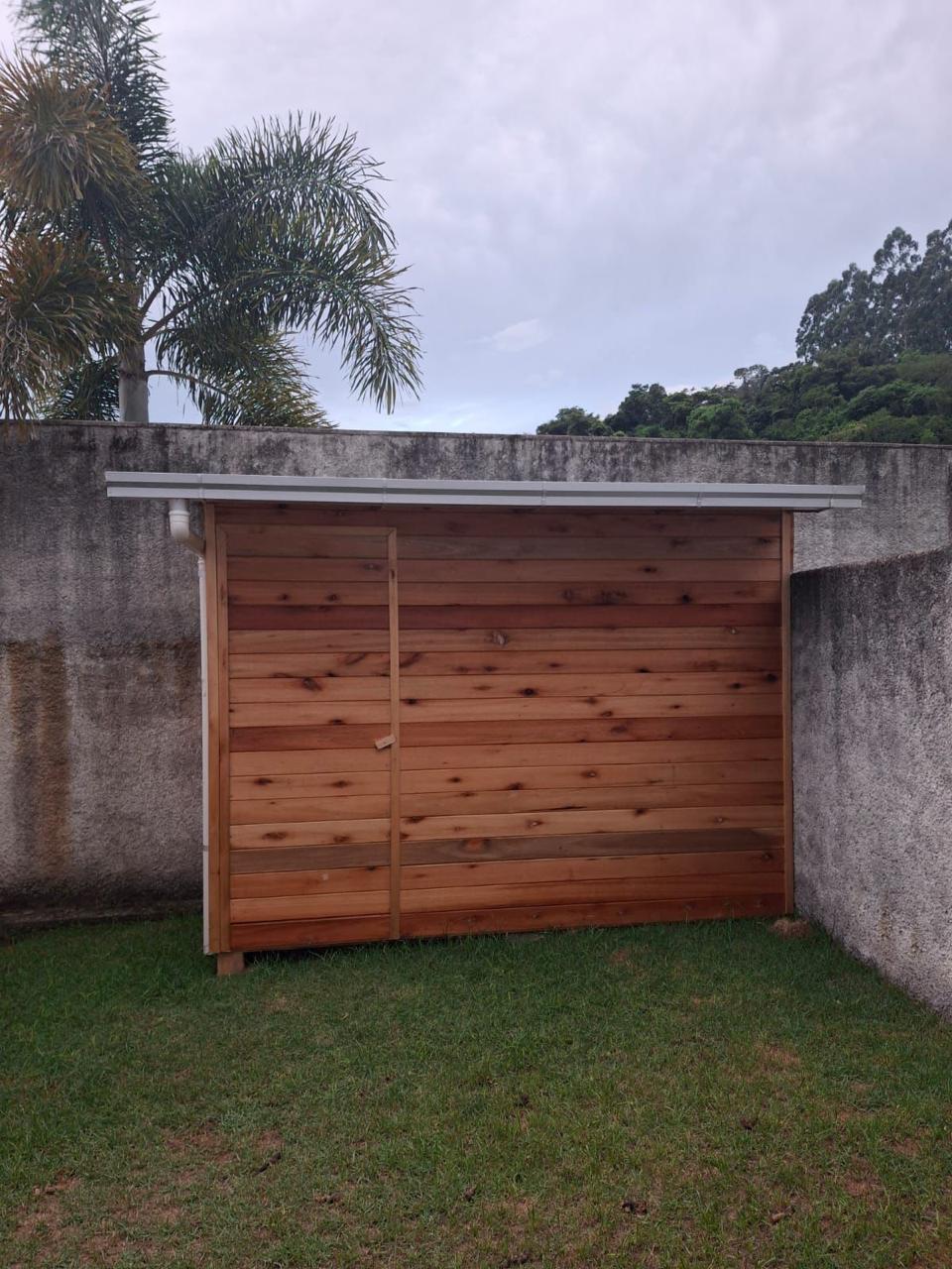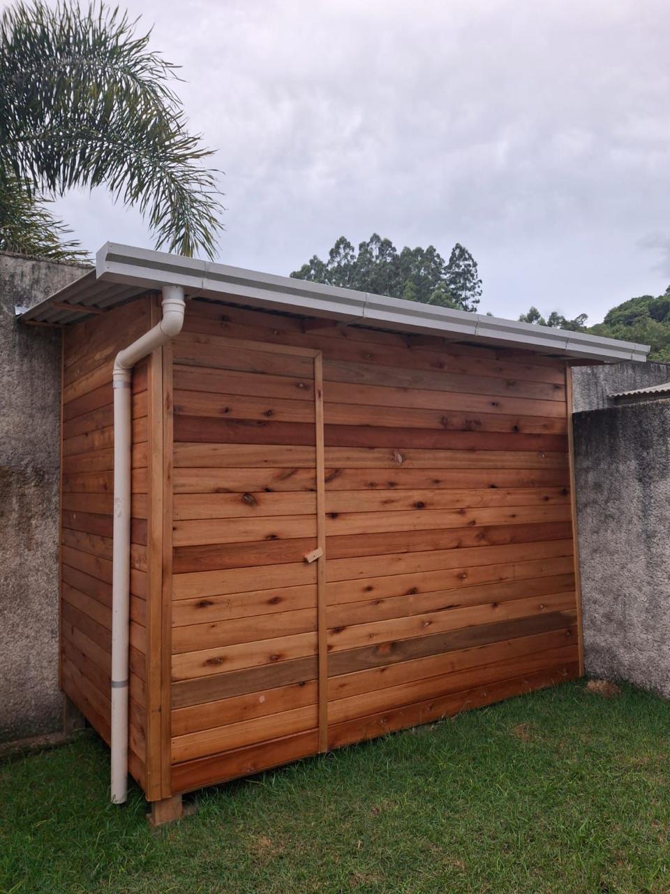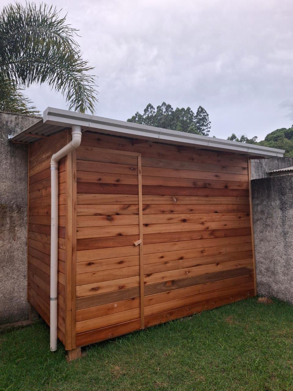 Material em aluzinco natural com descidas e joelhos de PVC 75mm.