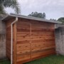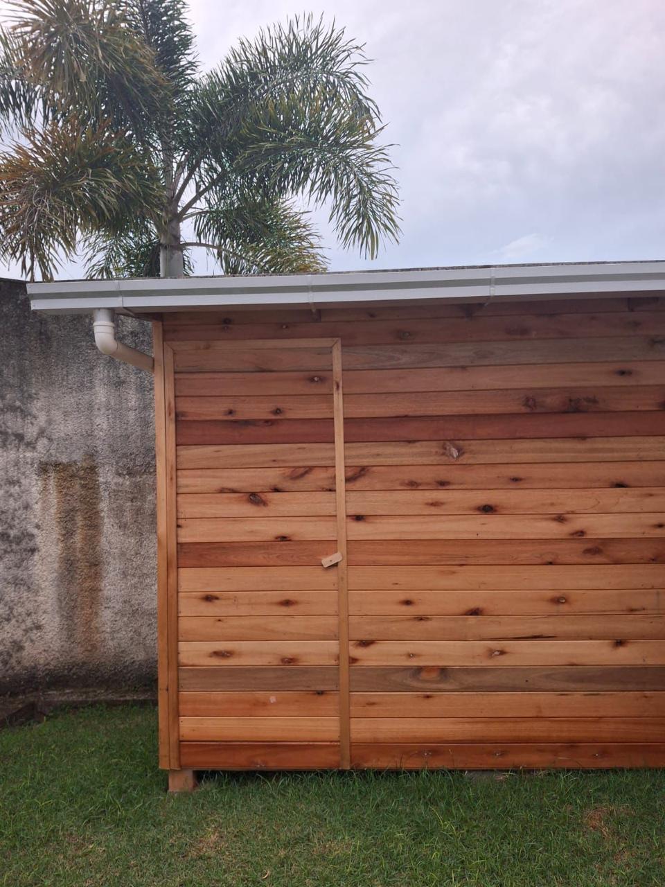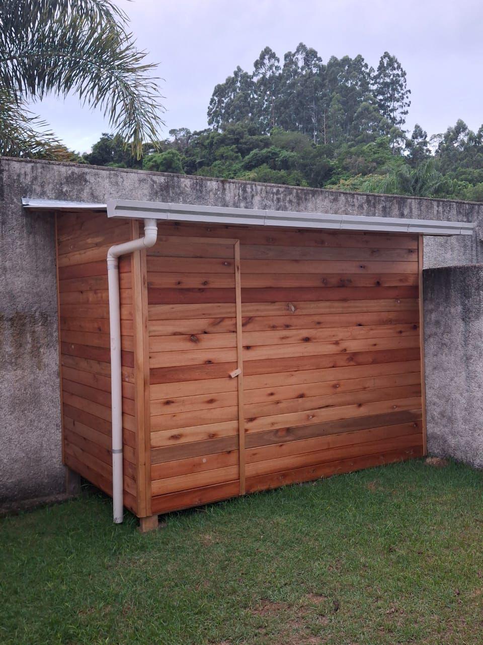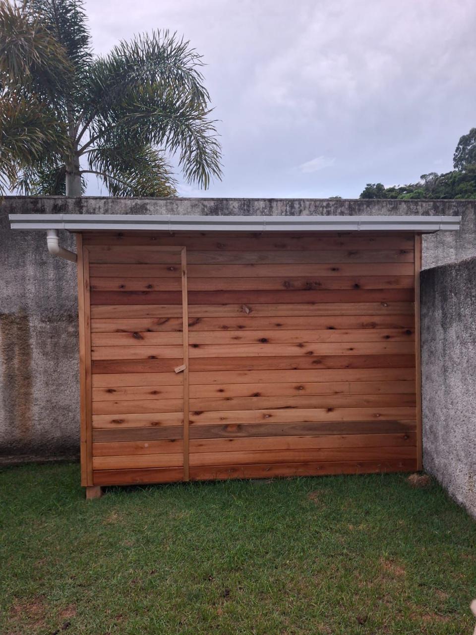 Material em aluzinco natural com descidas e joelhos de PVC 75mm.