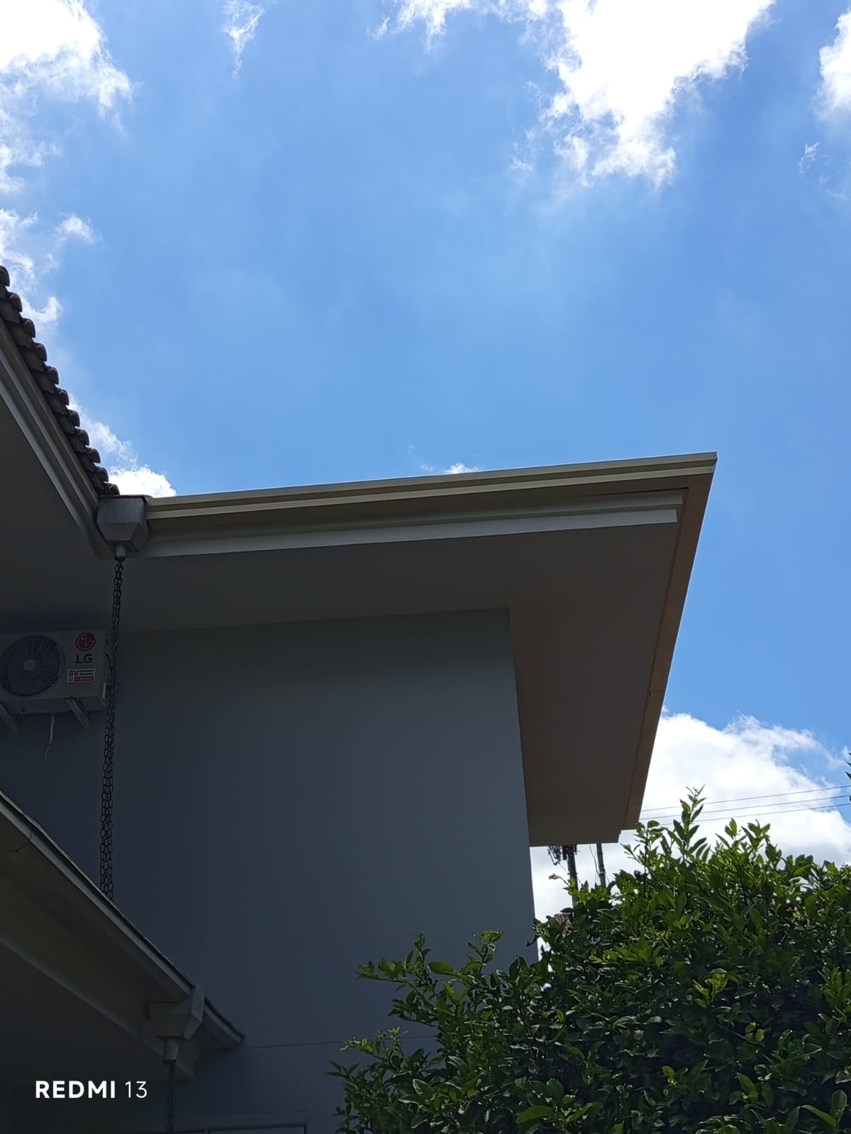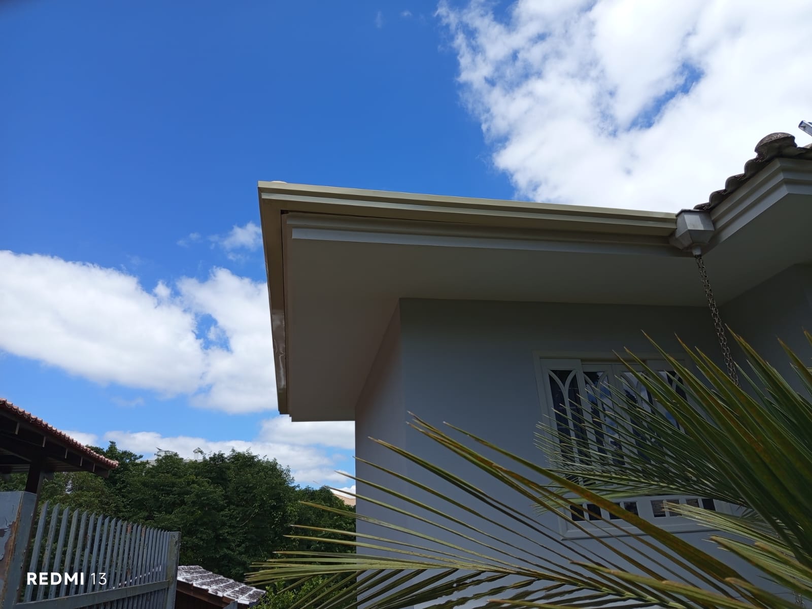 Material em aluzinco natural + canos e joelhos PVC 75mm e corrente natural.