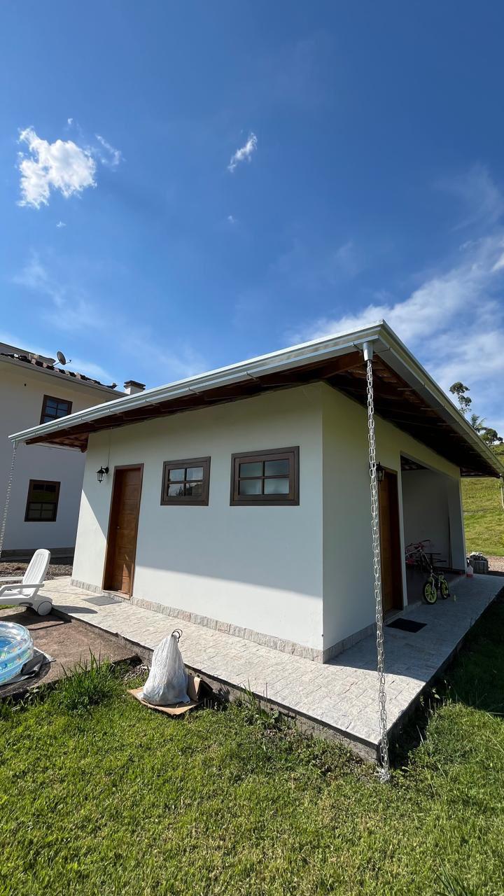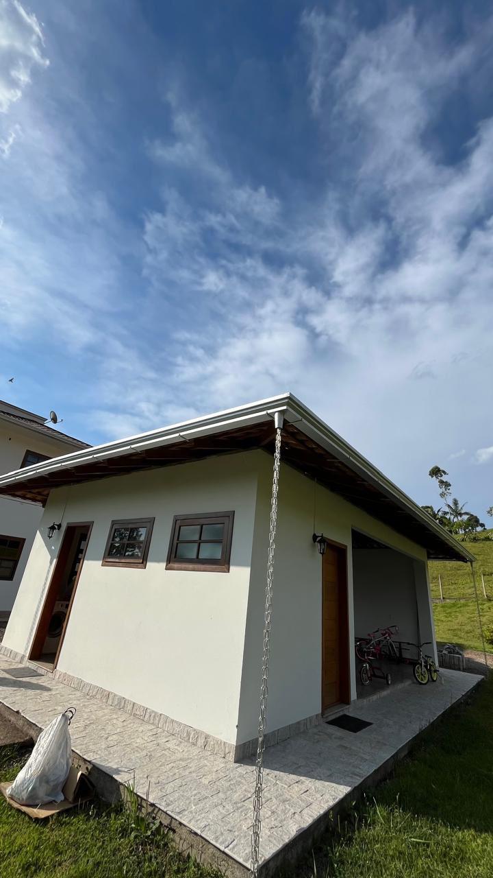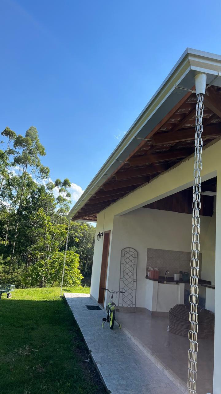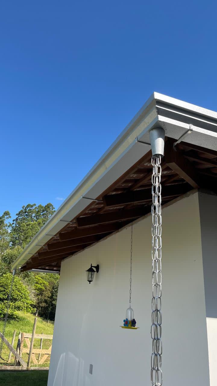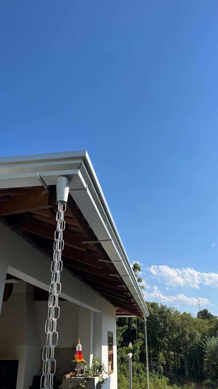 Material em aluzinco natural + canos e joelhos PVC 75mm e corrente natural.